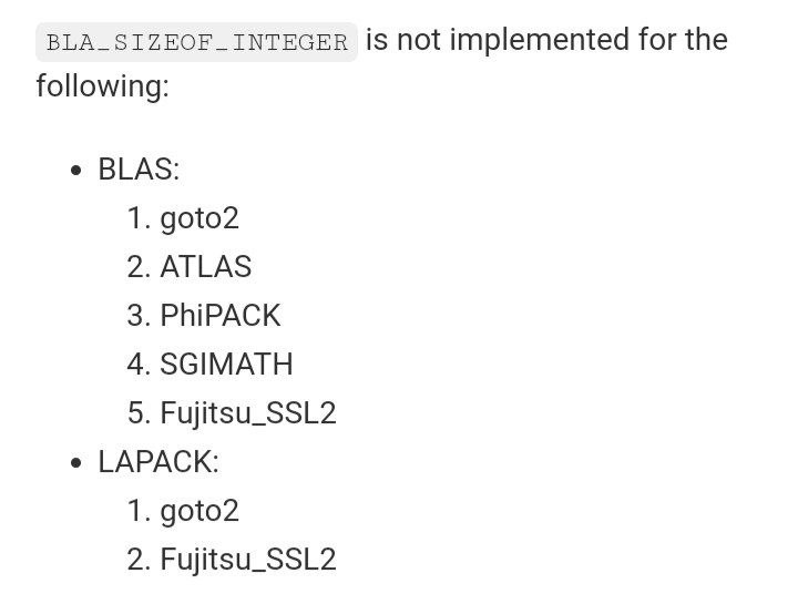 https://gitlab.kitware.com/cmake/cmake/-/merge_requests/6407#note_993035Find{BLAS,LAPACK}: Implement BLA_SIZEOF_INTEGER (!6407) · Merge requests · CMake / CMakeChanges: NVHPC-BLAS was separated from Generic Fujitsu_SSL2's, IBMESSL's, EML's LAPACKs use BLAS flags without searching of LAPACK library New input variable...